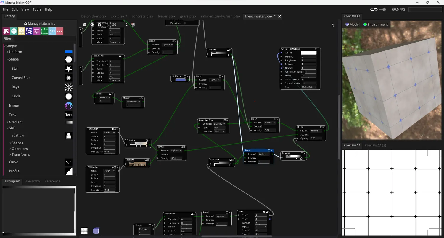 Von Betonoberflächen über Holzböden bis hin zu bewegtem Wasser - ein Werkzeug um Texturen für 3D-Modelle generativ zu erzeugen.